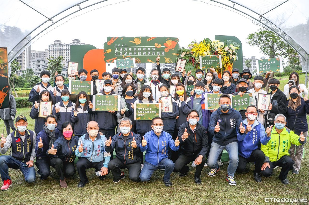 2021全國青年景觀競賽暨社區綠美學競賽頒獎典禮,今(6日)於新北市淡水公八公園舉辦,由副市長劉和然頒獎予獲獎青年景觀團隊,並表揚優選社區單位。現場同時展出多座青年景觀作品,搭配大面積花海,期望利用園藝景觀競賽作品活化市區空間,增加景觀創意與市民交流的機會。