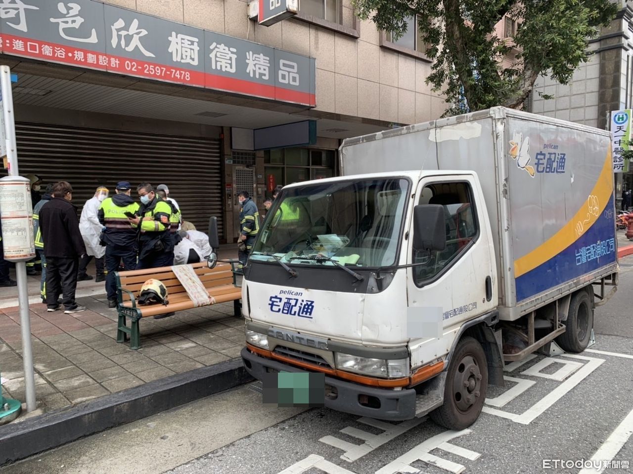 ▲▼台北市大同區重慶北路三段發生小貨車撞行人事故。(圖/記者黃彥傑翻攝)