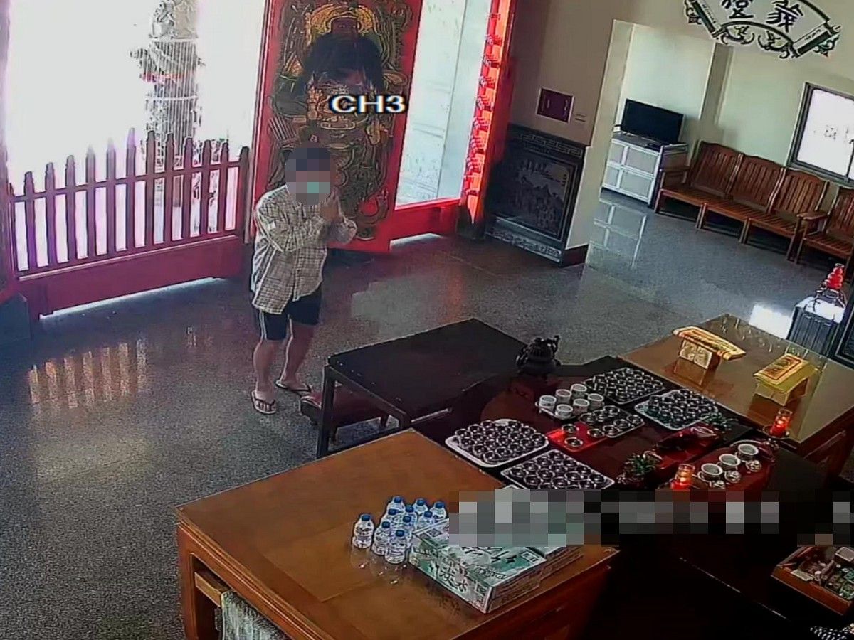 湖內警分局茄萣分駐所日前接獲轄內某宮廟人員報案,稱廟內的線香及十盒香環(價值新台幣1000元整)遭不明男子竊取。警方檢視廟內監視器影像,發現竊嫌進入廟宇後,一開始不忘先雙手合十誠心地拜拜,隨後眼見四下無人,便轉入置放金紙、香環與線香等祭拜用品的偏殿行竊,得手後旋即離開現場。