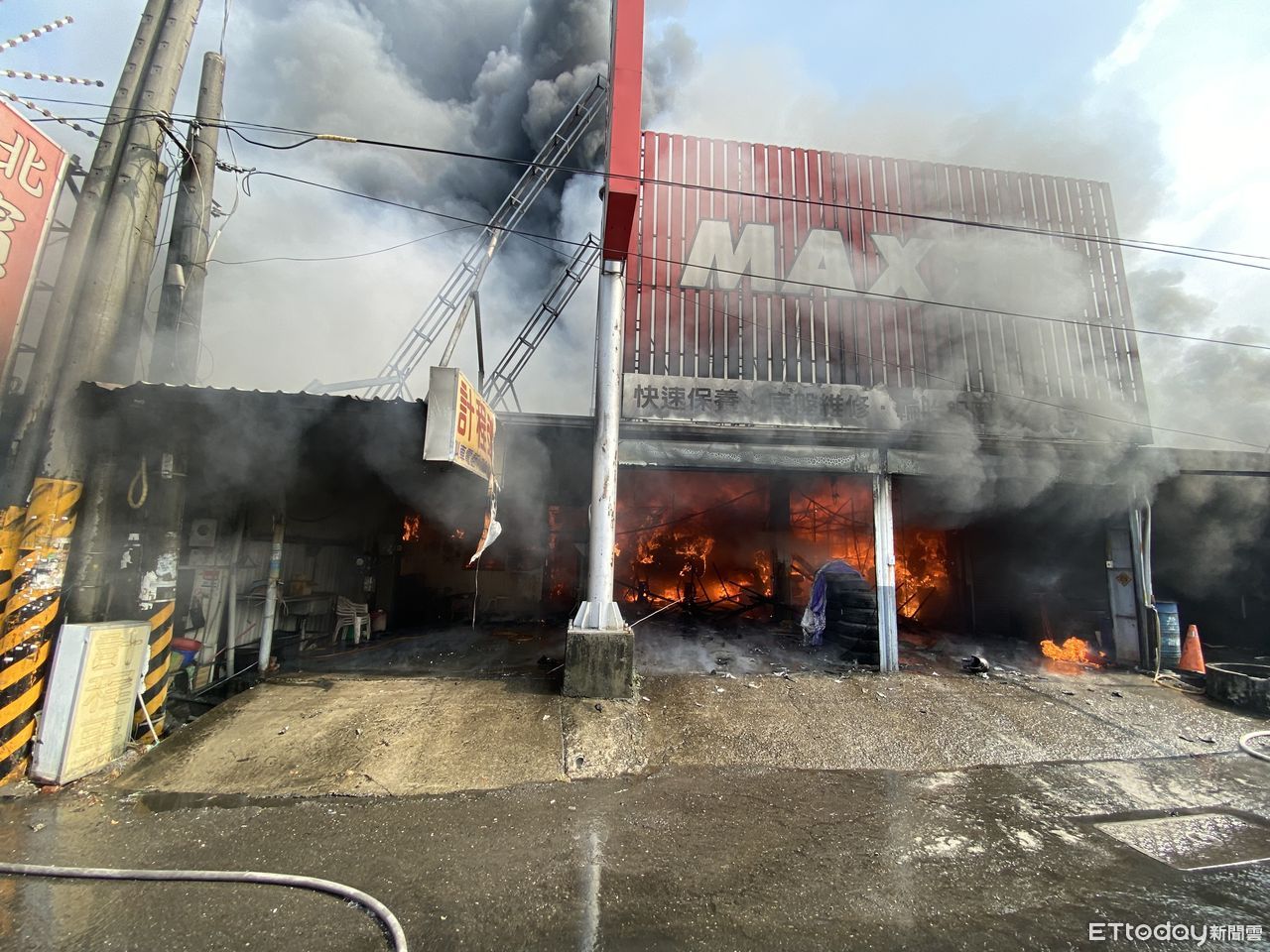 ▲屏東輪胎廠大火,1人燒傷送醫。(圖/記者陳崑福翻攝)