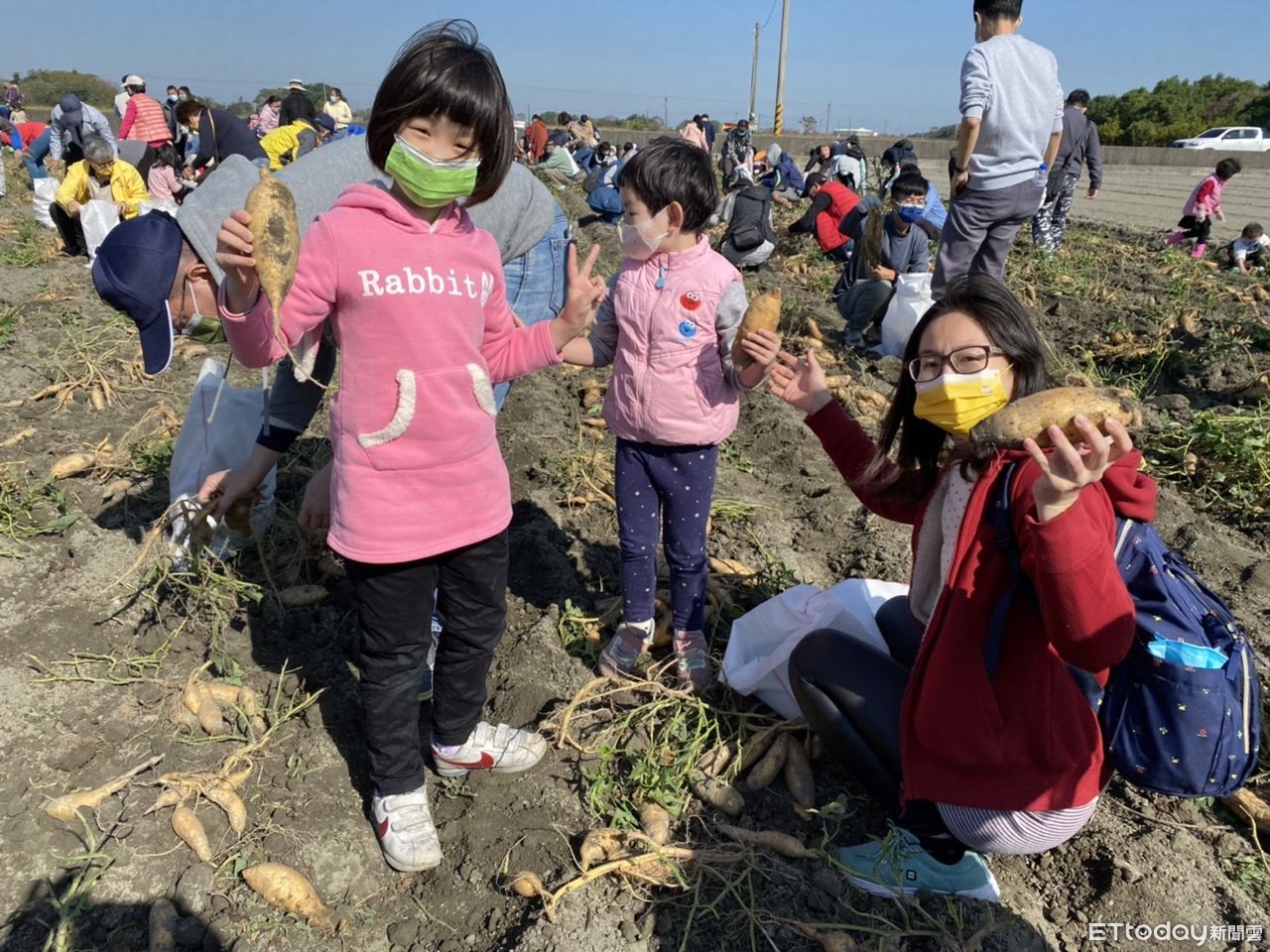 ▲台電雲林區處關懷在地農民協助行銷當地農特產品,今日號召近500位員眷到水林鄉下田採收地瓜,讓員工體驗農家生活,和家人共享田園樂趣。(圖/記者蔡佩旻翻攝)