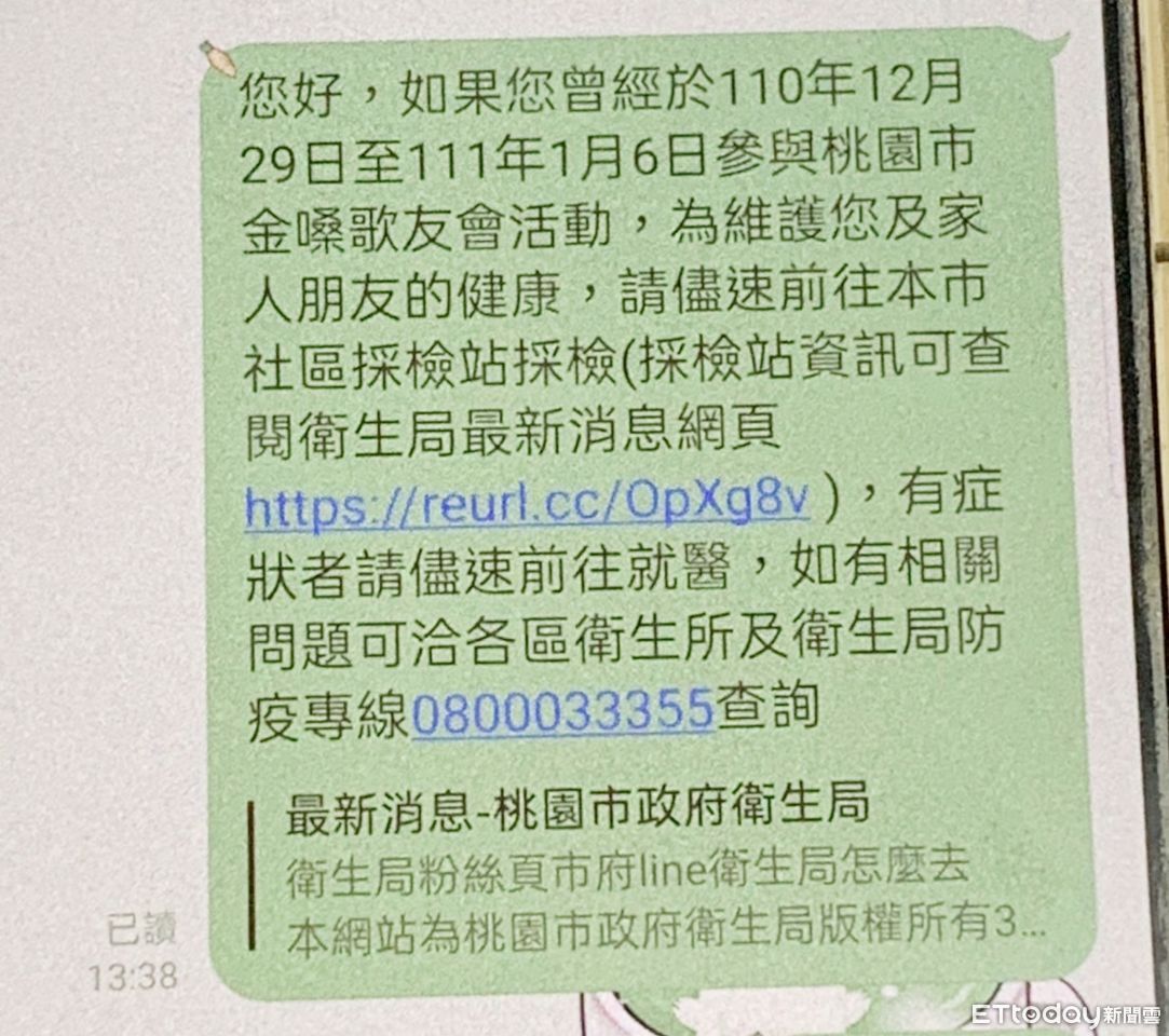 ▲桃園市衛生局這兩天急發3500份簡訊,最近曾參與金嗓歌友會民眾盡速接受採檢。(圖/記者沈繼昌攝)