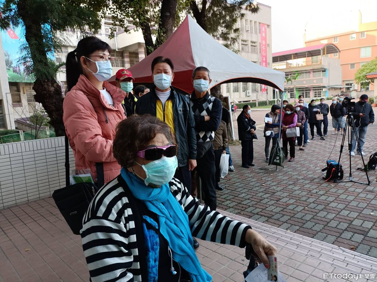 ▲僑仁國小投開票所一早7點就有民眾排隊搶頭香。(圖/記者唐詠絮攝,下同)