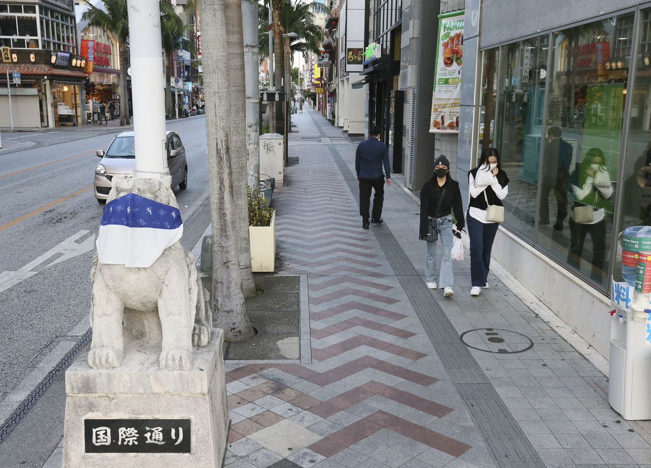 ▲沖繩實施蔓延防止措施後,著名的國際通人煙稀少。(圖/達志影像/美聯社)