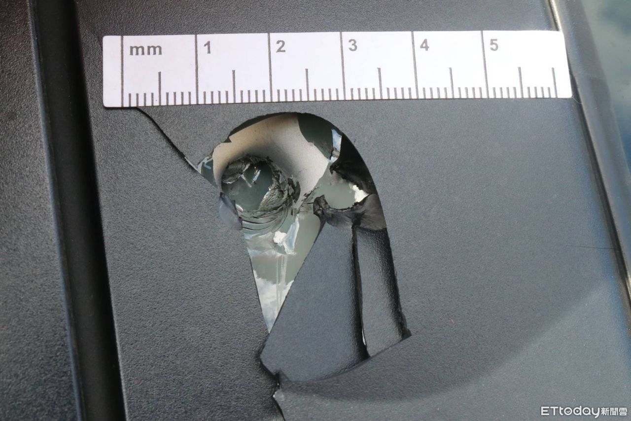 ▲自小客車出現彈孔 。(圖/記者陳崑福翻攝,下同)