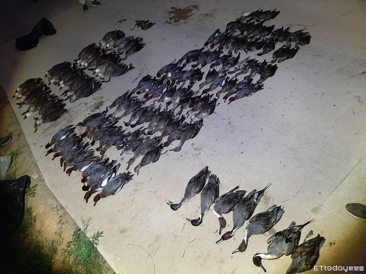 ▲金門沙崗安岐排水農地出現大量鳥屍。(圖/記者林名揚翻攝)