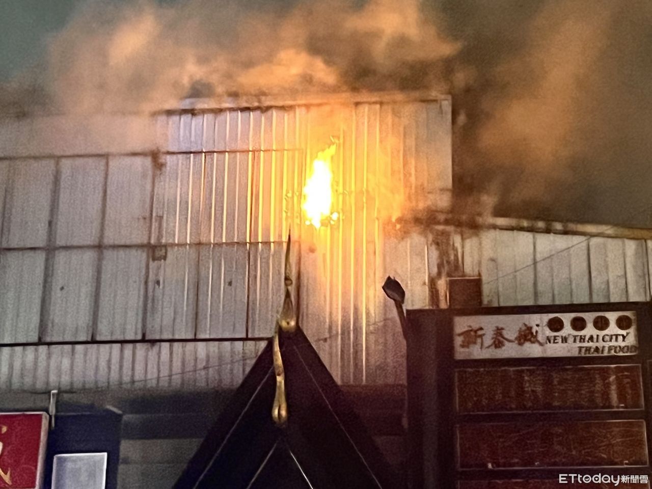 起火地點一樓是餐廳,2、3樓則是KTV,起火當下KTV還沒營業,樓下餐廳發現火警後,也已經立刻疏散顧客,2:樓KTV鐵皮建物冒出大量濃煙及火舌,消防人員接駁多條水線射水搶救,及防護緊鄰之民宅,避免延燒。現場疏散3名受困民眾脫困。