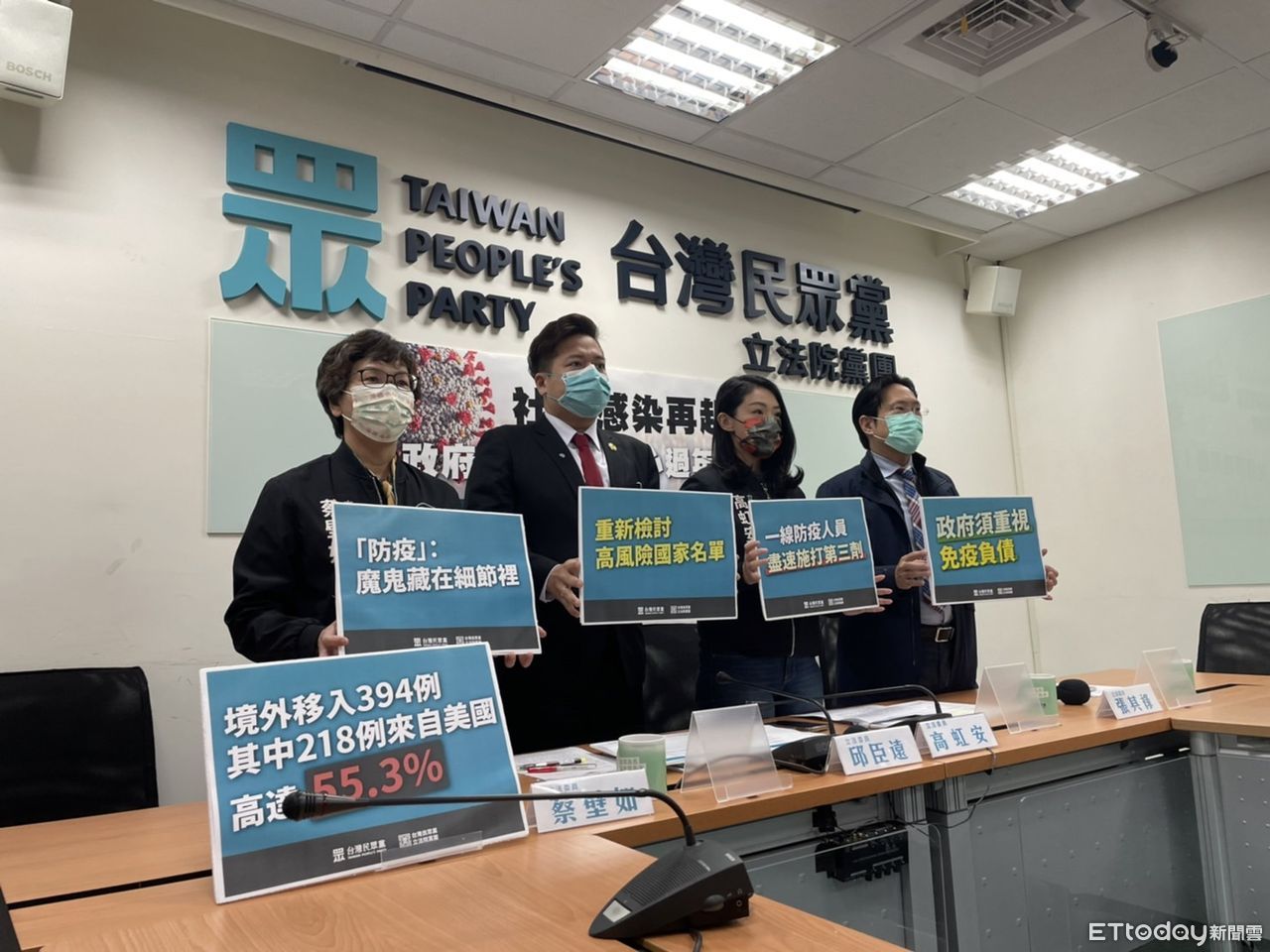 民眾黨團今天上午舉行「社區感染再起!政府能讓民眾放心過年嗎?」記者會。邱臣遠說,政府邊境政策規劃錯誤,目前英國、美國、法國等國家每日確診者突破2千人,光是美國今年元旦至11日之前就有高達218境外移入案例,遠超第二名越南19例,台灣卻未將其列為「重點高風險國家」,反而南非等非洲國家入境台灣病例少之又少卻被列入,恐是「政治凌駕專業」,因其他壓力,不敢把真正疫情嚴峻的國家列入高風險名單。
