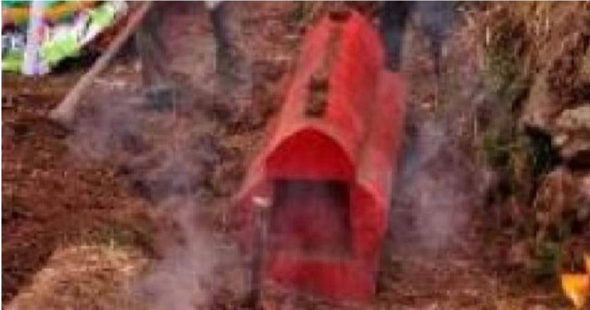 ▲村民認為紅色棺木是凶兆的血棺。(圖/翻攝自微博)
