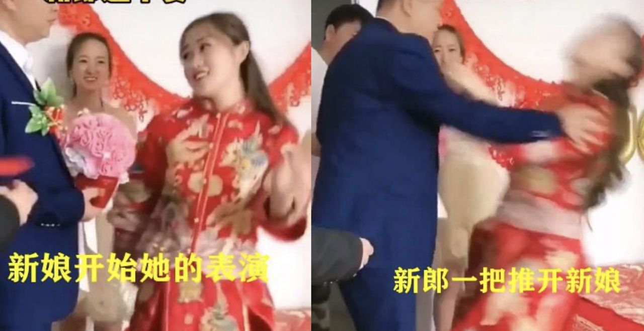 ▲新娘為了新郎跳舞,卻被推開怒罵。(圖/翻攝微博)