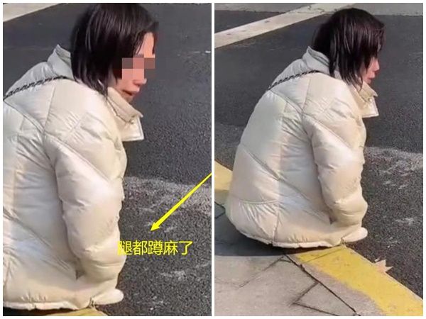 綜合陸媒報導,該名短髮女子獨自一人蹲在路口,疑似因褲子、裙子等遮蔽下體的衣物不見,只好蹲下並用羽絨外套遮掩,期間多次久蹲而腿麻,導致重心不穩搖晃,差點摔倒。