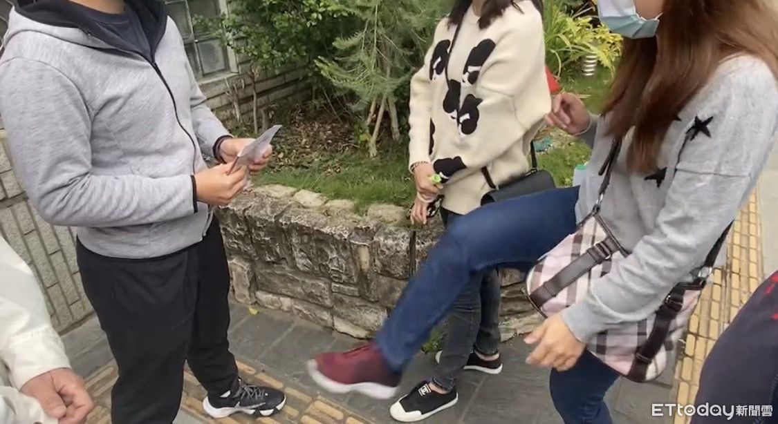 ▲王姓家長示意張女如何出腳踹學生。(圖/記者白珈陽攝)