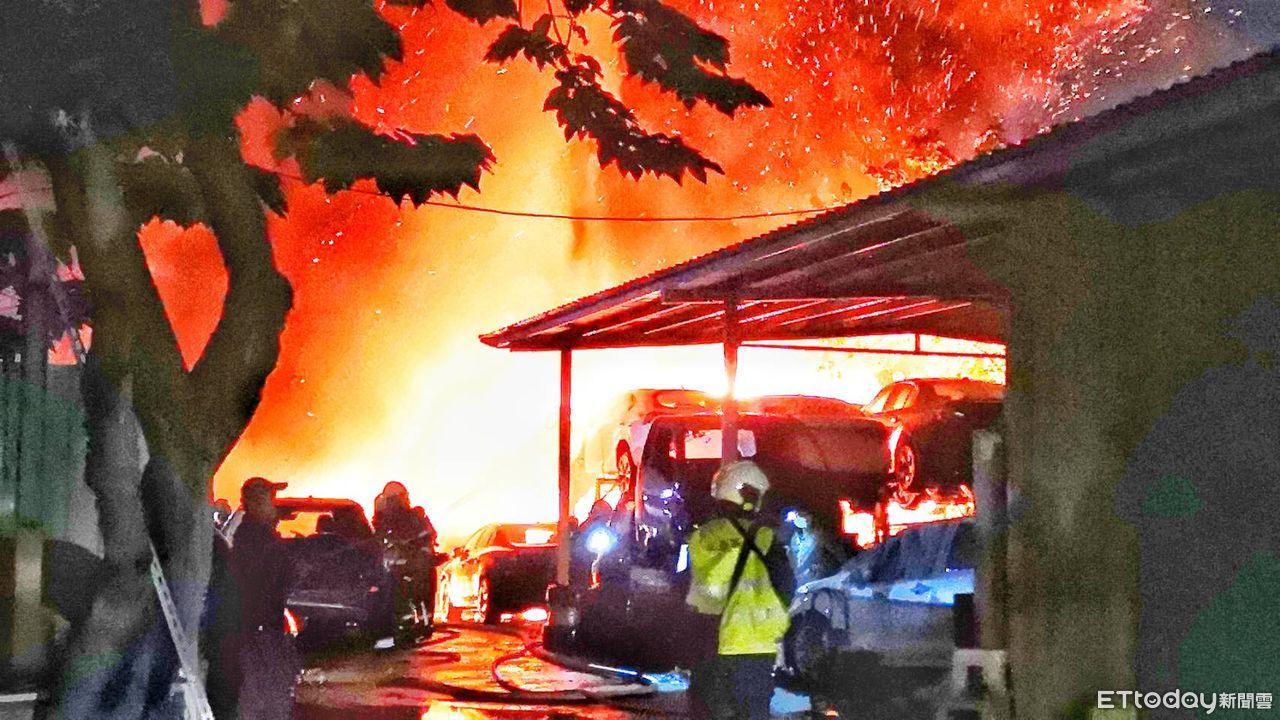 火警事發地點位在延平北路7段176巷,18:56空地停放汽車起火,約10輛汽車燃燒,初步評估不會波及鄰近建物。已出動消防車輛28輛、救護車輛2輛、78名人員到現場協助救災。