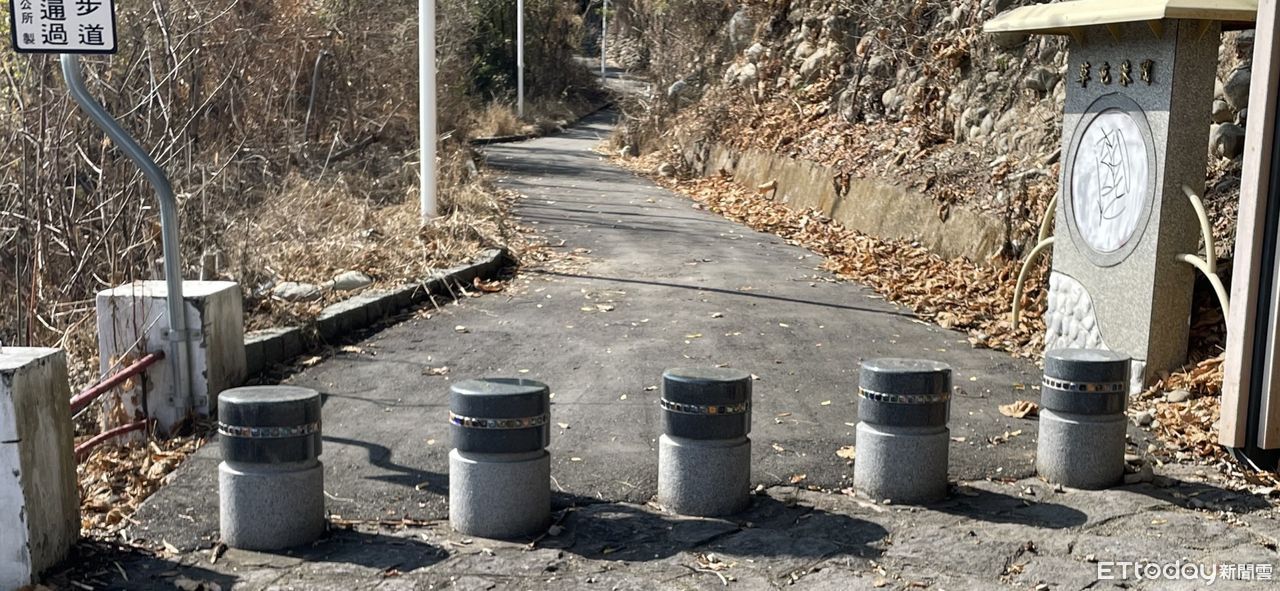 ▲遊客發現雙十吊橋橋頭步道路障有如骨灰罈,於社群媒體與友人討論。(圖/民眾提供)