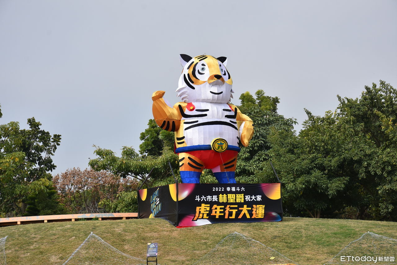 ▲2022斗六燈會「Light One Douliu」主燈「威樂虎」設置於斗六藝術水岸園區。(圖/記者蔡佩旻翻攝)