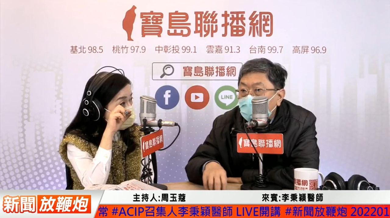 周玉蔻今在「新聞放鞭炮」專訪指揮中心專家小組委員李秉穎,但開場她就先憤怒表示,自己第三劑要打高端都遲遲預約不到。她也當場示範用手機進入1922平台,卻完全預約不到。隨後開嗆「這是中央跟地方要負責」,更點名陳時中「你為何不生氣?縱容柯文哲胡搞瞎搞整我們台北人」。