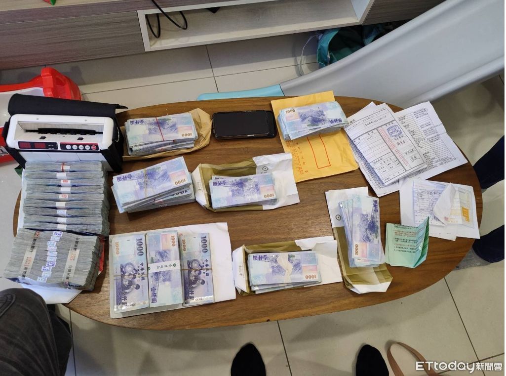 ▲警方查扣名錶1只、LV包1個、教戰守則5張、教戰筆記本2本現金565萬餘元等贓證物。(圖/中打提供)