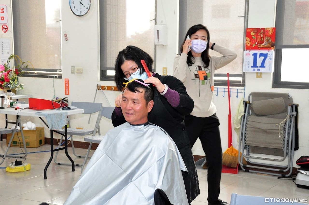▲嘉南藥理大學師生,攜手台南市女子燙髮職業工會成員發揮專長,免費為里民提供愛心義剪服務,希望港仔西長輩們都有帥氣、美麗髮型,漂亮過好年。(圖/記者林悅翻攝,下同)