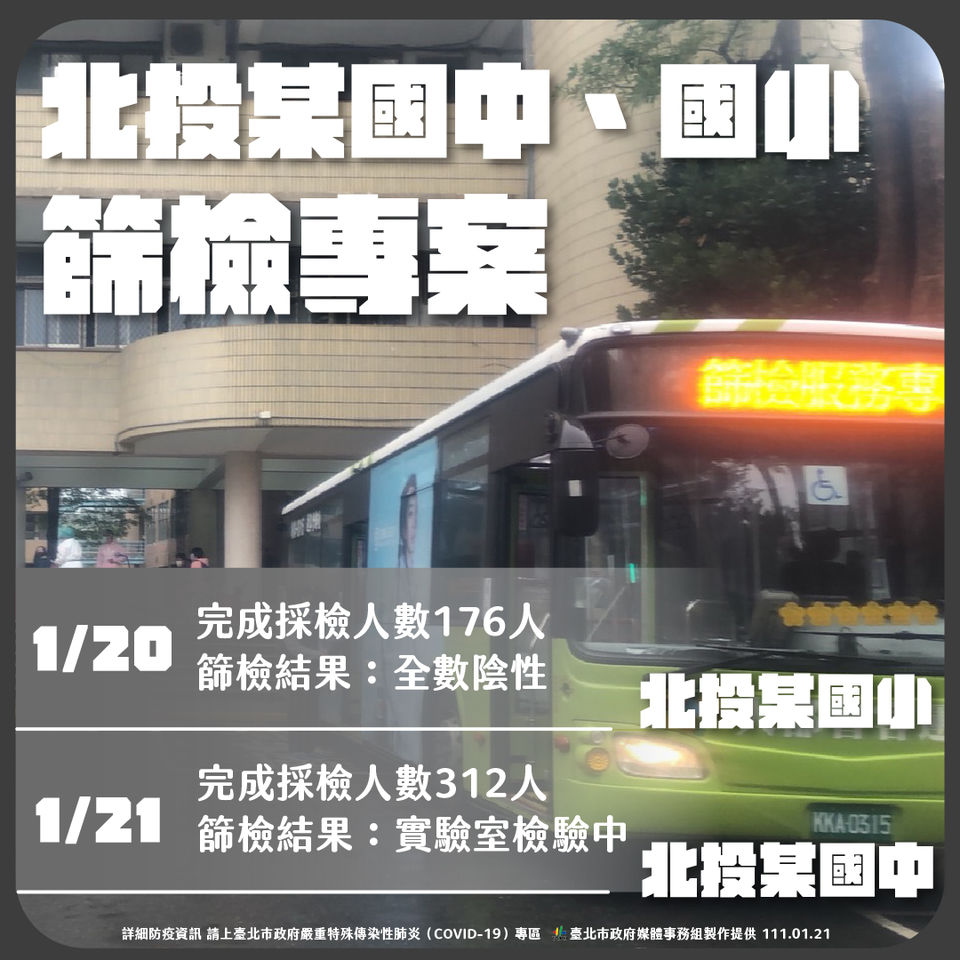 黃珊珊又說,但北市不放心,今天又在學校採檢;昨天完成國小176人採檢,全數陰性,國中則採檢312人,結果還在檢驗當中。