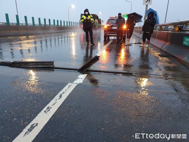 蘆竹警分局於上午5 時50分許獲報,有多輛車輛行經在蘆竹區台61線北上25.8公里,因伸縮縫鋼筋有2處斷裂發生爆胎事故,隨即派員趕往了解,並發現有2處斷裂且突出路面10餘公分,員警立即於現場實施交通管制、疏導及處理交通事故,同時也通知養護單位交通部公路總局第一區養護工程處中壢工務段緊急派遣防撞車及開口契約廠商,前來維護安全及搶修。