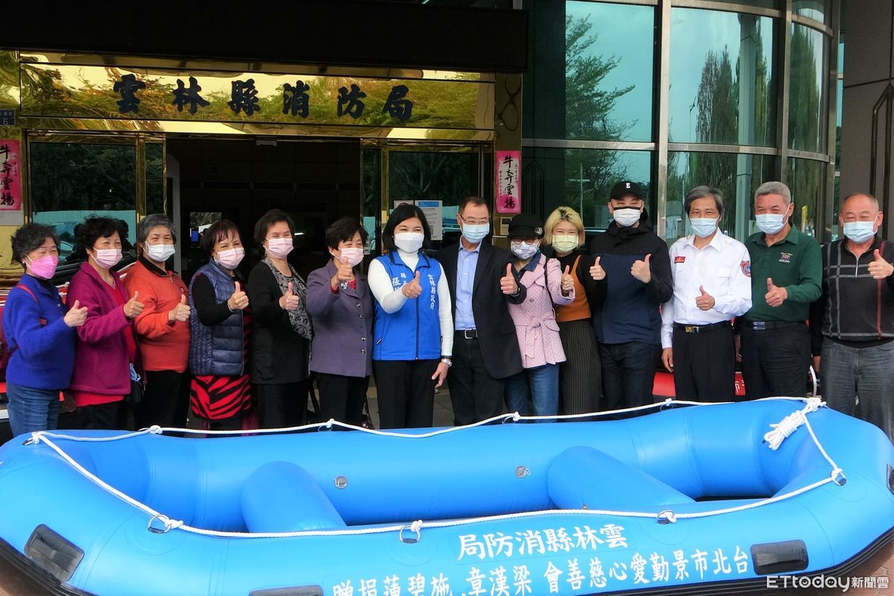 ▲雲林縣消防局舉行救生艇捐贈典禮,由台北市景勤愛心慈善會暨梁漢章董事長捐贈11艘救生船艇,雲林縣長張麗善親自代表鄉親受贈,並頒發感謝狀。(圖/記者蔡佩旻翻攝)