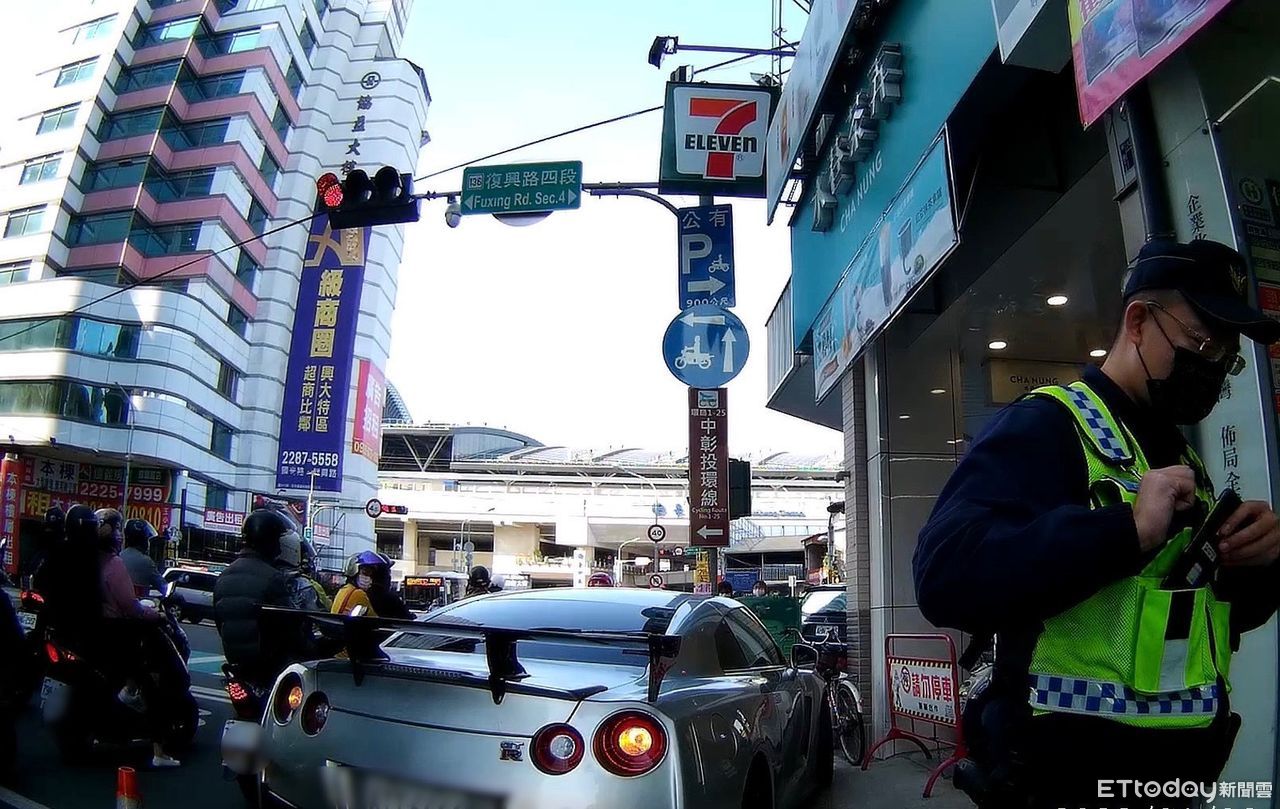 台中市第三警分局立德派出所員警朱國彰、何誠晉16日執行巡邏勤務時,發現鄰近火車站的復興、大智路口車輛阻塞情形嚴重,連忙下車察看是否發生交通事故,才會遭成車輛回堵,沒想到竟是一輛素有「東瀛戰神」之稱的跑車Nissan GT-R在路中拋錨。