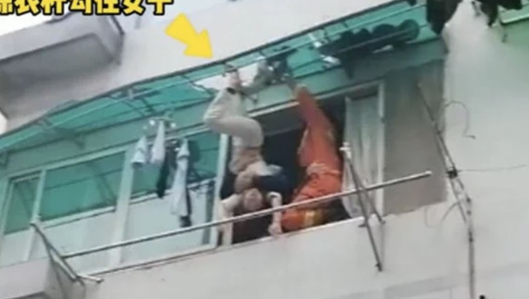 不過,女子並沒有直接墜樓,而是命大的倒掛在了3樓的遮雨棚,雙腳正好被勾著晾衣桿,人還睡著了,完全沒有任何反應。