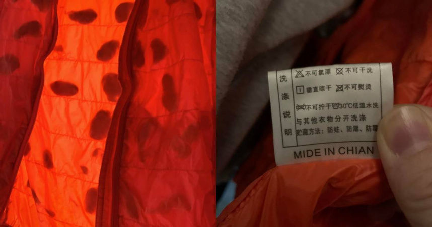 原PO日前在臉書社團「爆料公社」發文,「很喜歡網購,方便又快速,但唯獨沒有評價,對於名不見經傳的廠牌根本就是踩地雷,這是第三次了,已經完全失去信心。小孩的羽絨衣,買來後試穿很滿意,想說洗一洗再穿,我有看洗標,低溫水洗那邊沒有一隻手,代表可以丟洗衣機的。」