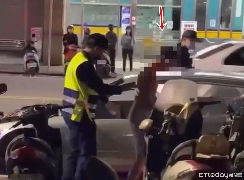 ▲酒駕李姓男子(上圖箭頭所指)開未掛牌改裝車逛大街,拒攔查還衝撞,警開2槍逮人。(圖/記者游芳男翻攝,下同)