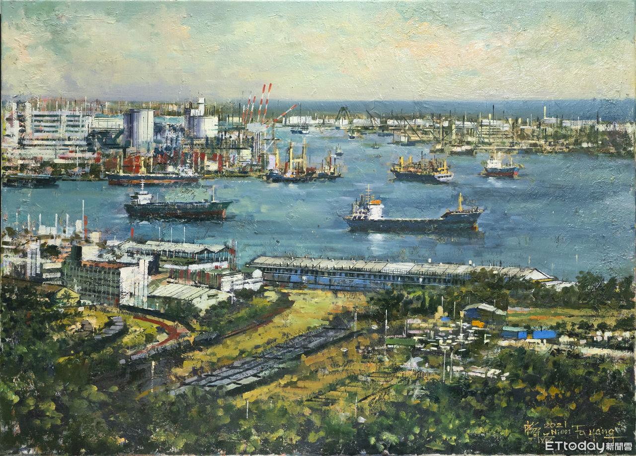 ▲楊年發畫作「高雄港口」。(圖/記者陳宏瑞翻攝)