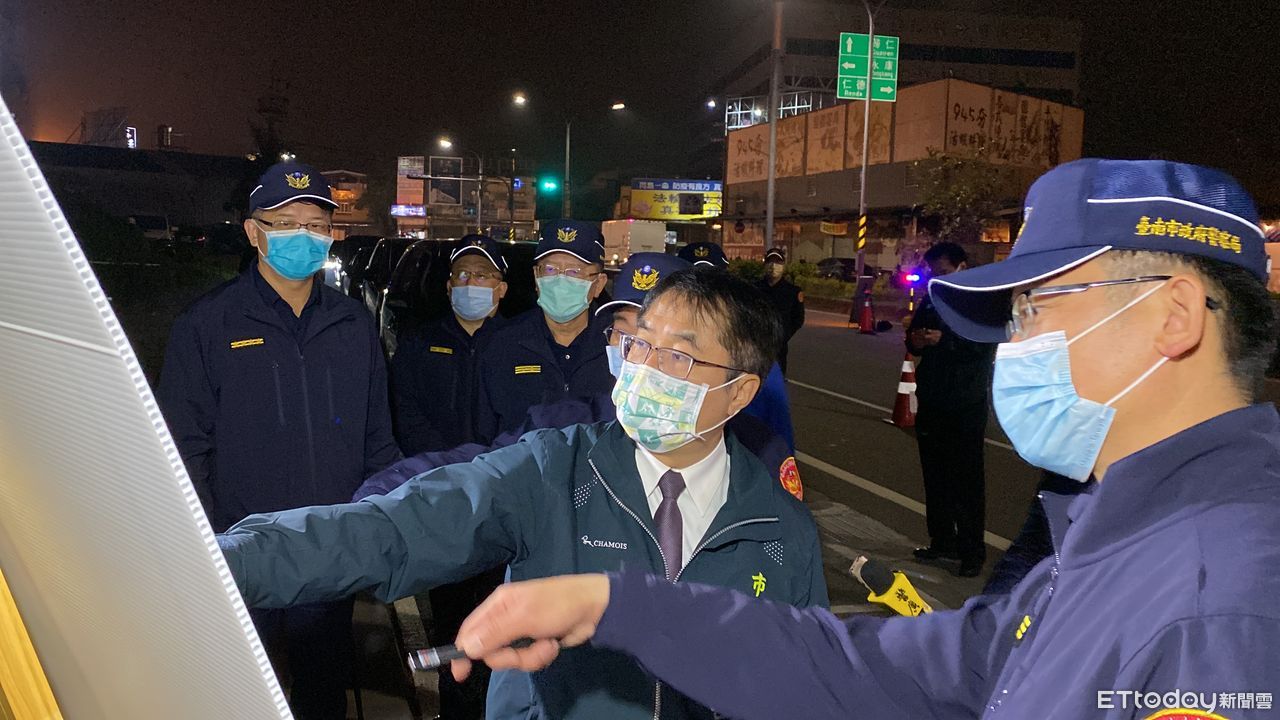 ▲台南市長黃偉哲由市警局局長方仰寧及守望相助大隊大隊長宋俊明陪同,前往慰問龍潭里守望相助隊及執行路檢勤務的永康分局員警,並致贈慰問金及慰問品。(圖/記者林悅翻攝,下同)