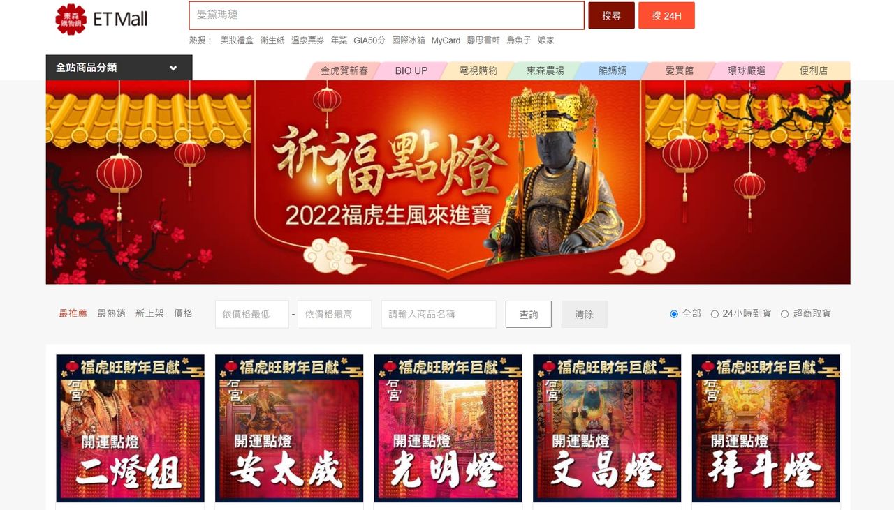 ▲東森購物網攜手鹿港天后宮推線上開運點燈。(圖/翻攝自東森購物網)