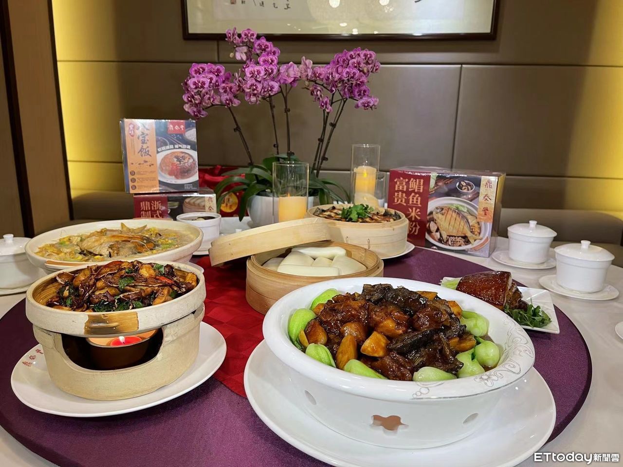 6道台式年菜選材不馬乎,北京鼎泰豐淮揚菜廚師長林金安介紹,鴻運虎掌烏參的「虎掌」,是採用富含膠原蛋白的豬膝筋製作,口感Q彈;過年象徵年年有餘的富貴鯧魚米粉,嚴選東海鯧魚,先油炸後放入高湯慢火熬煮,肉質紮實鮮美不軟爛,綿細閩南芋頭和湯汁融為一體,Q彈的米粉,油蔥酥提味,很有台灣味。
