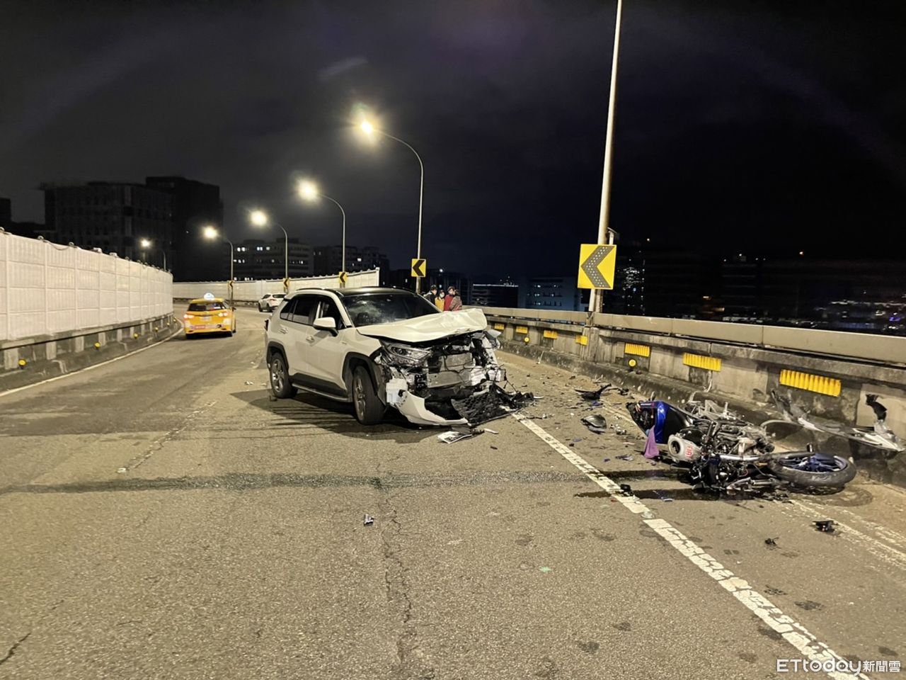 一台汽車25日晚間近11點「逆向」開上環東大道,從台北市南港區往內湖區方向,撞上一台汽車跟重機,當場造成重機騎士從環東最上面摔到平面道路,騎士重傷目前仍在醫院搶救。
