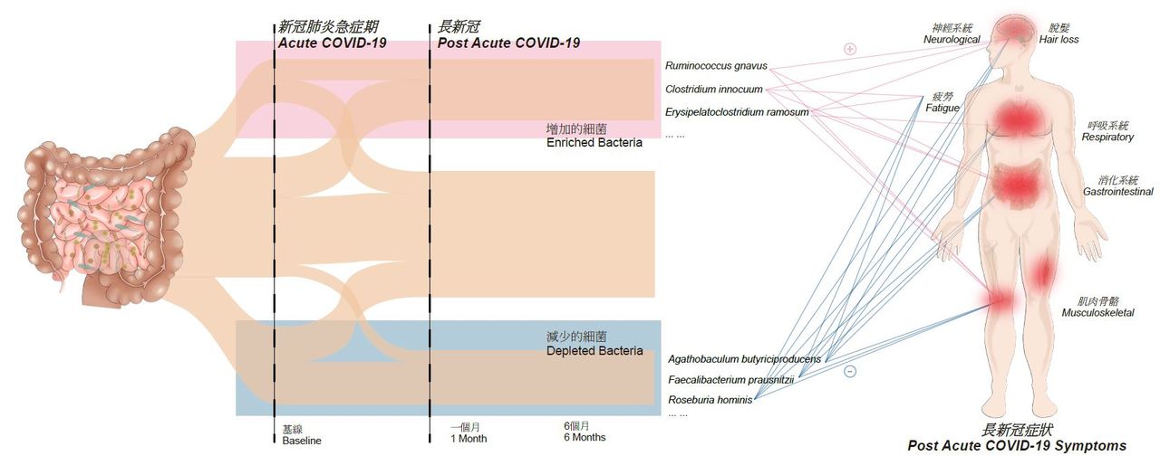 研究團隊並發現,「長新冠」患者在年齡、性別、其他疾病、使用抗生素和抗病毒藥物,以及感染新冠肺炎的嚴重程度等多方面均與沒有出現後遺症人士並沒有分別,反映腸道微生態失衡是導致「長新冠」的主因。