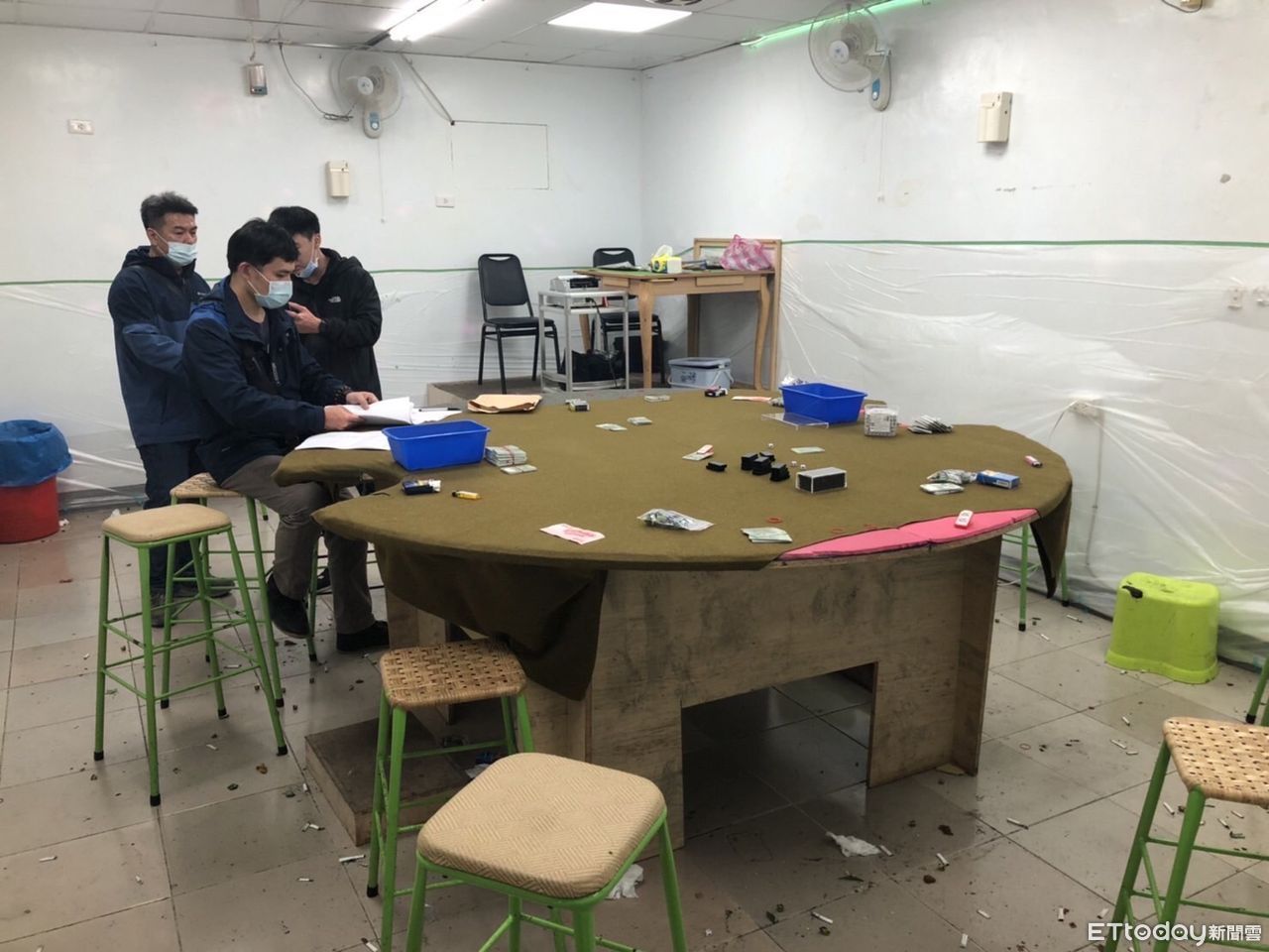 警方另外發現,該賭場並沒有賭現金,全部以籌碼在賭桌上輸贏,發現共計有17萬多元的籌碼、天九牌以及點鈔機、監視器等證物,訊後依照賭博罪嫌將負責人以及員工4人送辦,其餘賭客則由社維法裁處。
