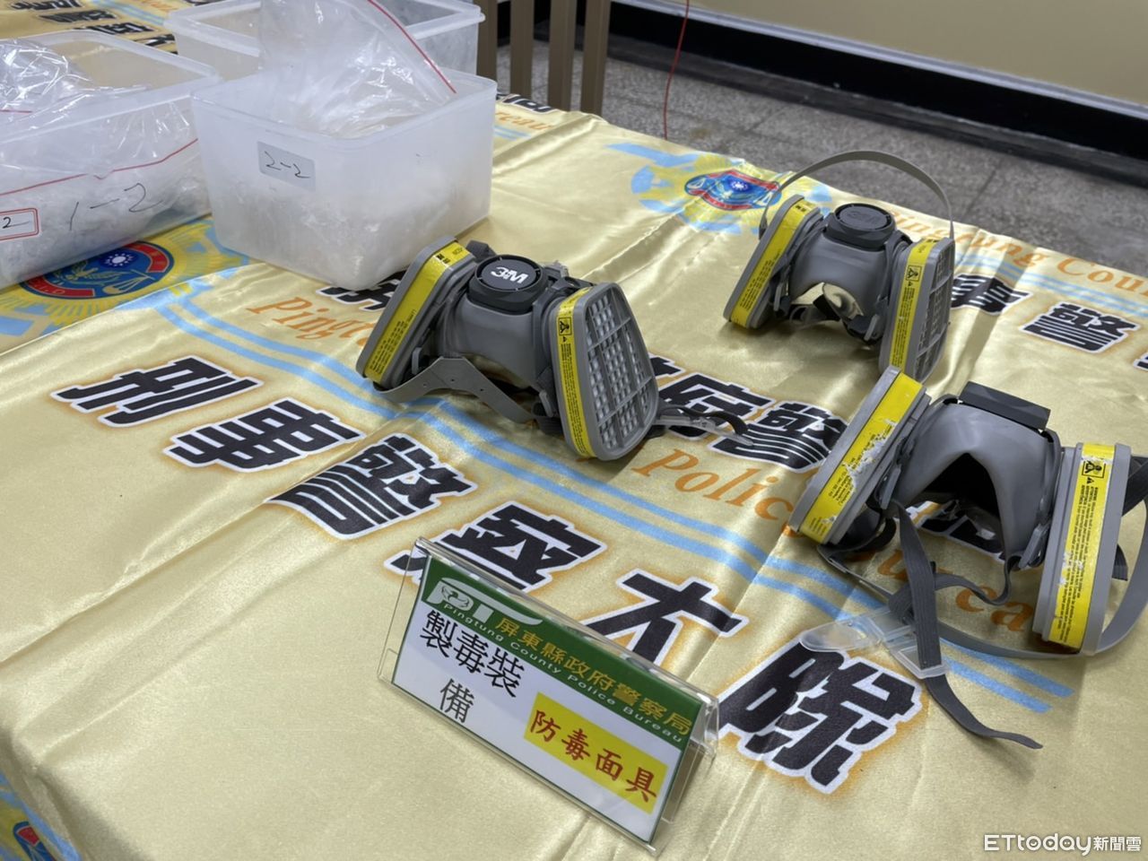 屏東縣警方查緝製毒工廠,發現毒梟不但承租雞舍煉毒,避免煉毒異味曝露行蹤,也擔心煉毒產生的空氣,頭戴防毒面罩提煉毒品,在警攻堅時混然不知,愣在原地不知所措,被警方逮個正著,訊後依法送辦。