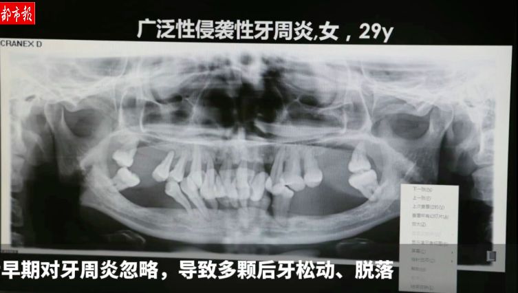 之後,曉曉發現一些牙齒慢慢開始鬆動脫落,她開始覺得有些不對勁,但聽周圍的朋友說,牙周炎不能治療,於是一直拖著沒去醫院就診,直到牙齒越掉越多,她近日才到武漢大學口腔醫院牙周科門診就醫。