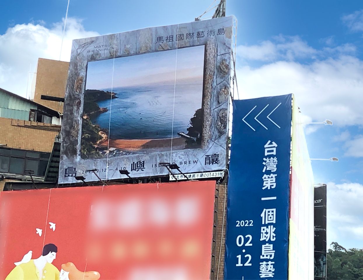 ▲文化總會與連江縣合辦「馬祖國際藝術島」,台北西門、士林已掛上大型看板宣傳。(圖/文化總會攝,下同)