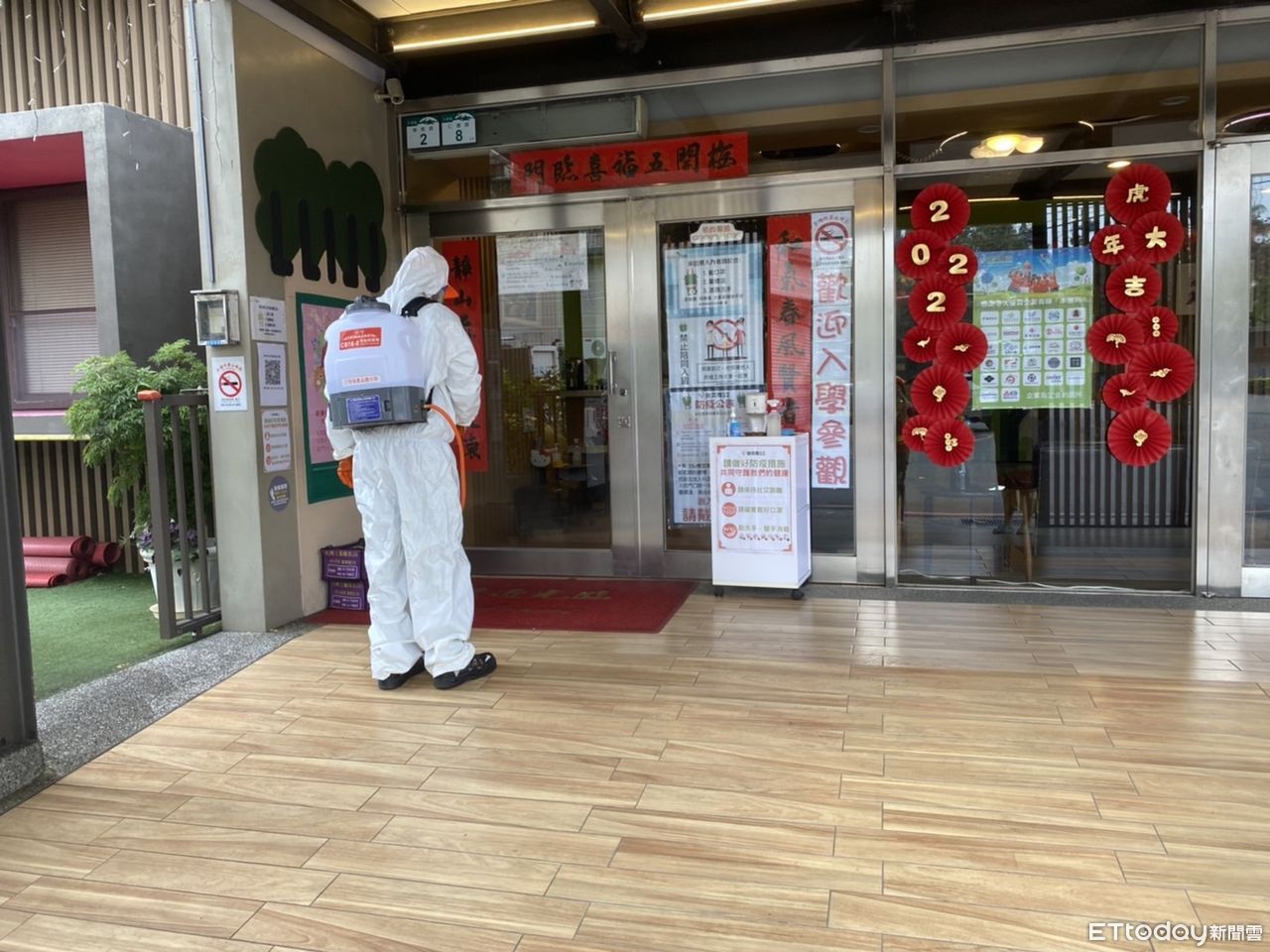 ▲疫情燒入校園,圖為高雄諾貝爾幼兒園清消畫面。(圖/記者賴文萱翻攝)