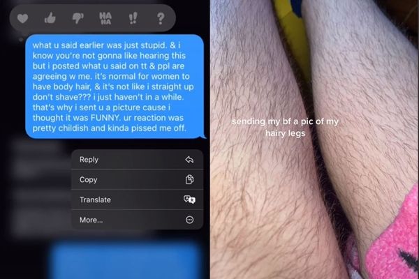 根據《每日星報》報導,TikTok一名女網友日前將一張自己滿是腿毛的照片以及與男友的對話紀錄po上網,從內容中則可以看到,兩人為了「腿毛」問題大吵一架。原來是原po看到自己的腿毛長得很長,因此特地拍照傳給男友並笑稱,「哈哈哈,寶貝,你看我的腿好多毛。我從聖誕節之後就沒有刮過腿毛了哈哈。」然而她的小情趣卻瞬間被男友潑了冷水。