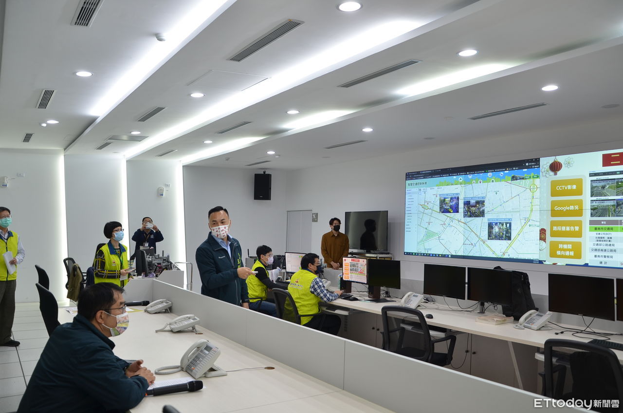 ▲台南市長黃偉哲,前往大台南智慧交通中心,聽取交通局局長王銘德報告執勤計畫,並慰勉春節執勤人員的辛勞。(圖/記者林悅翻攝,下同)