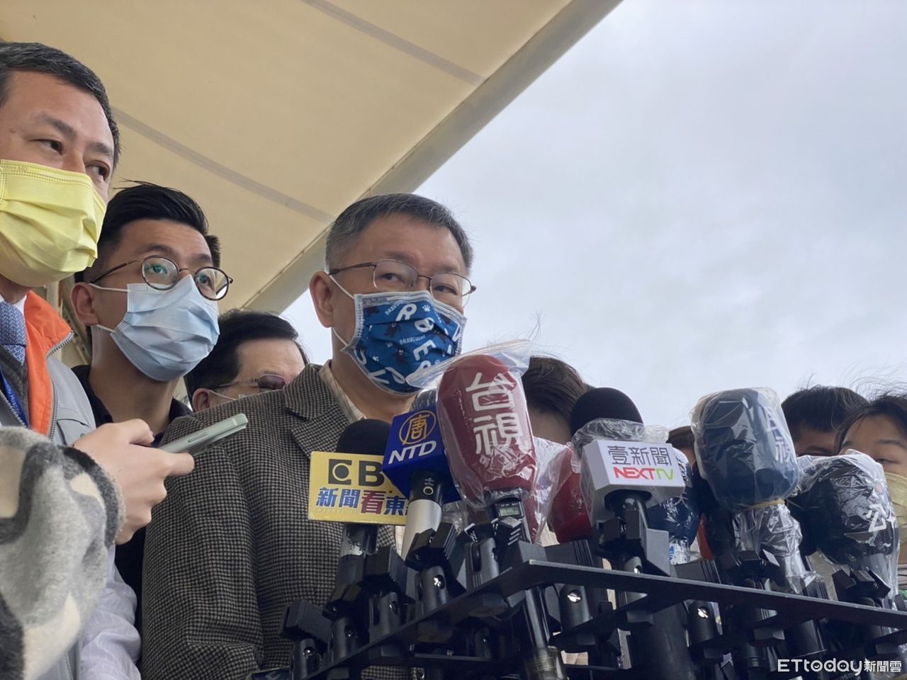 ▲台北市長柯文哲、副市長黃珊珊29日上午視察大佳河濱Drive-through春節專案。(圖/記者袁茵攝)