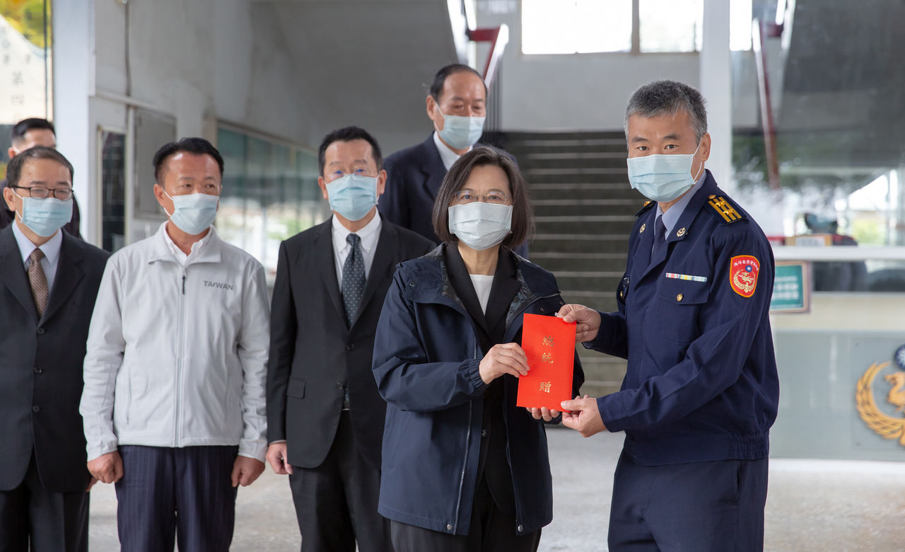 對於新的一年到來,蔡英文表示,新的一年,除了期許同仁們持續精進,守護國人生命安全,也要提醒大家,目前國際疫情依然嚴峻,在落實邊境防疫的同時也要注意自己的健康。最重要的是,在休息時間務必打電話給家人、問候家人,並祝福大家新年快樂、虎虎生風。隨後,蔡也頒發加菜金,感謝海巡弟兄姊妹的辛勞付出。