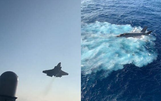▲美軍一架F-35C戰機24日在南海執行例行任務中降落航空母艦失敗,失控撞擊甲板後墜海。(圖/翻攝自推特)