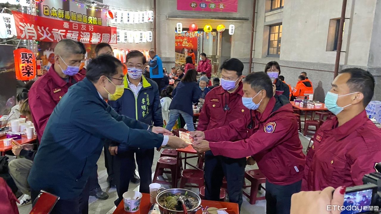 ▲台南市長黃偉哲參加七大隊「台日友好、消災祈福、溫馨圍爐」活動,慰問消防人員及日本群馬縣在台學生。(圖/記者林悅翻攝,下同)