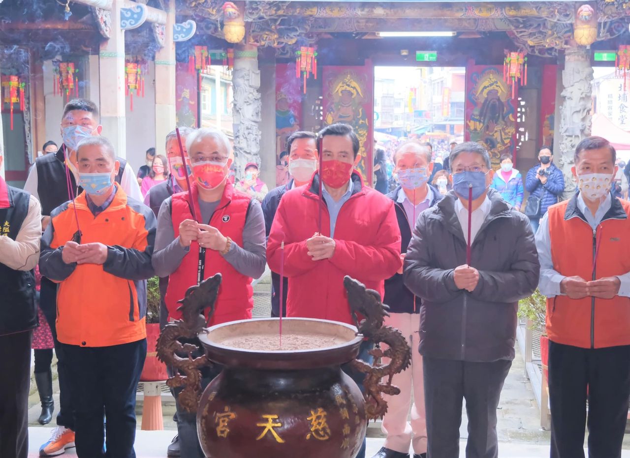 ▲馬英九今天與新竹縣長楊文科一同到慈天宮祈福。(圖/翻攝自楊文科臉書,下同)