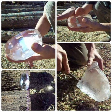 所以究竟要如何「融冰取火」呢?首先,想辦法找出現場最乾淨的冰塊,把它取下來;接下來的步驟,是將它切割成圓盤狀(使用刀、或任何你能找到的尖銳物品),使用手部的體溫「融化它」。當然這裡不是要你把它融成水,而是藉由融冰的動作使冰塊「晶瑩剔透」,彷彿凸透鏡一般。