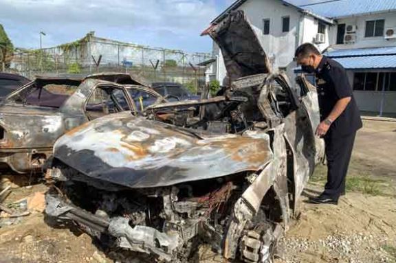 馬來西亞有3名偷車賊因在犯案時被車主發現,連忙開著贓車逃逸,怎知在路上卻自撞空屋,其中1人當場拋飛車,而車子因受嚴重撞擊瞬間火燒車,導致剩餘2名被卡在車內的嫌犯也被活活燒死。警方表示,該起事件發生在凌晨,除了肇事車輛外,還有一輛停在空屋旁的轎車也遭受波及,兩車皆完全燒毀。
