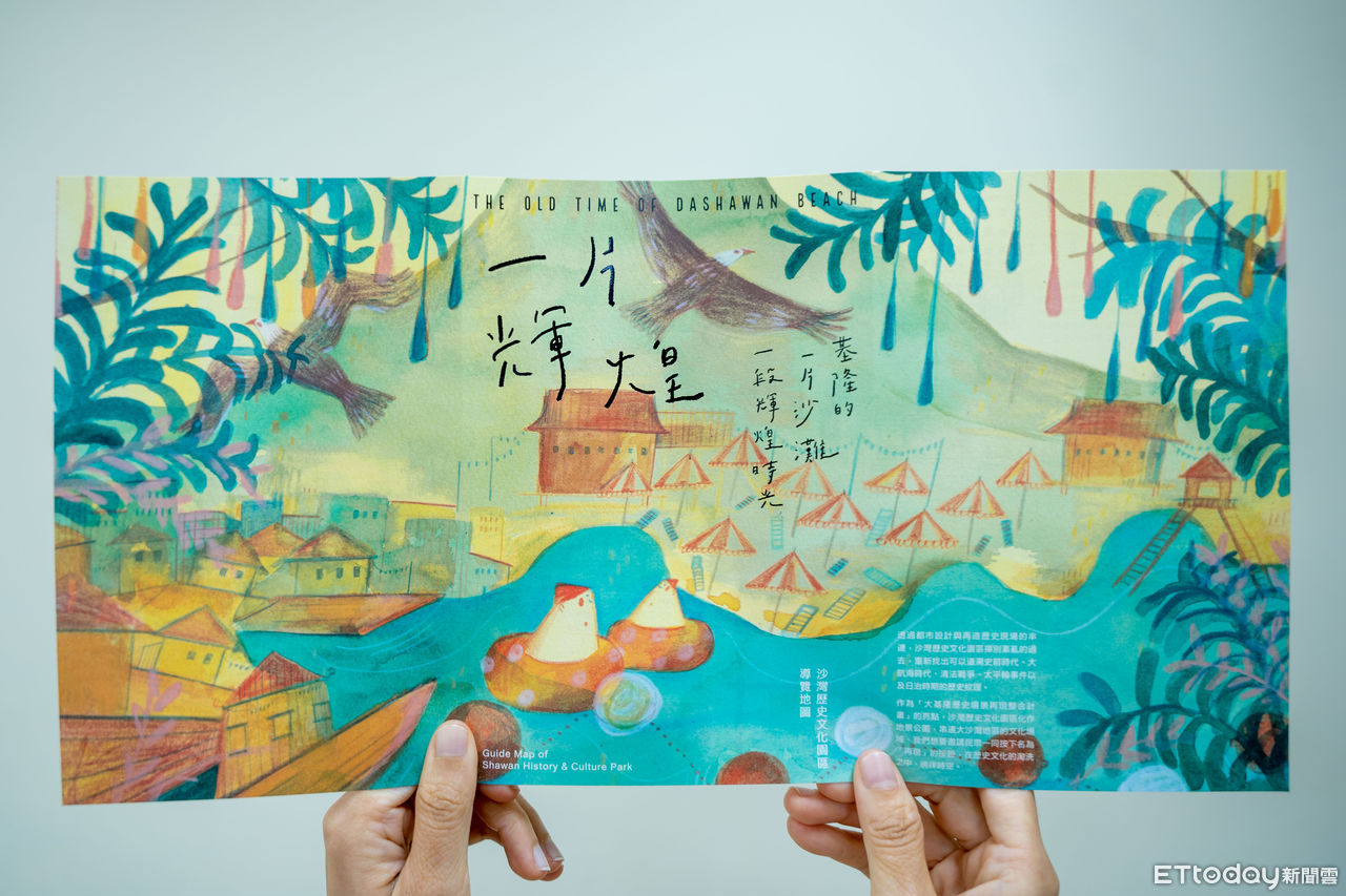 ▲旅外插畫家繪出「一片輝煌」沙灣新摺頁。(圖/基隆市文化局提供,下同)